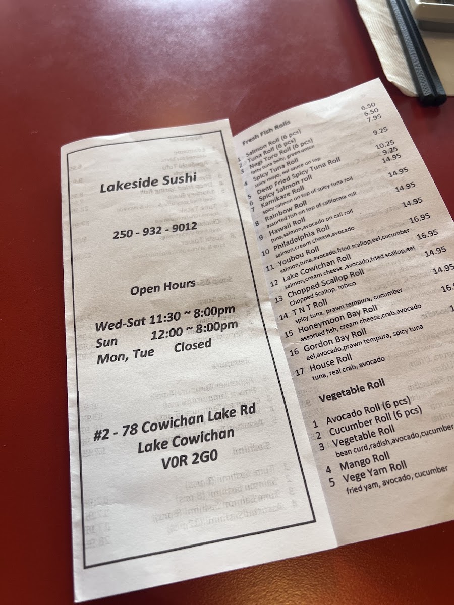 The menu at Lakeside Sushi reflects a relaxed, inviting atmosphere where fresh ingredients and straightforward flavors take center stage. It offers a mix of classic sushi rolls and Japanese favorites that pair well with a casual lunch or a quiet dinner by the lake.